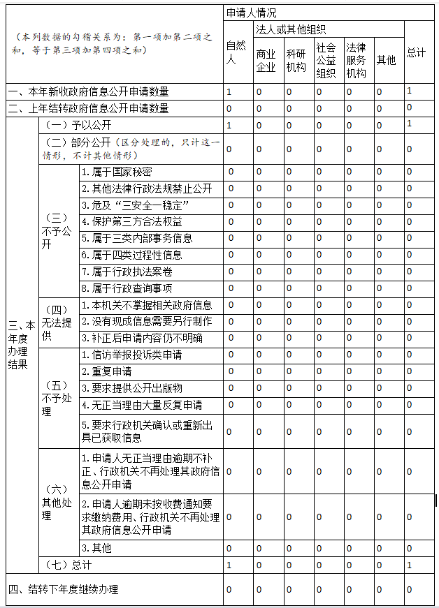 三、收到和處理政府信息公開申請情況