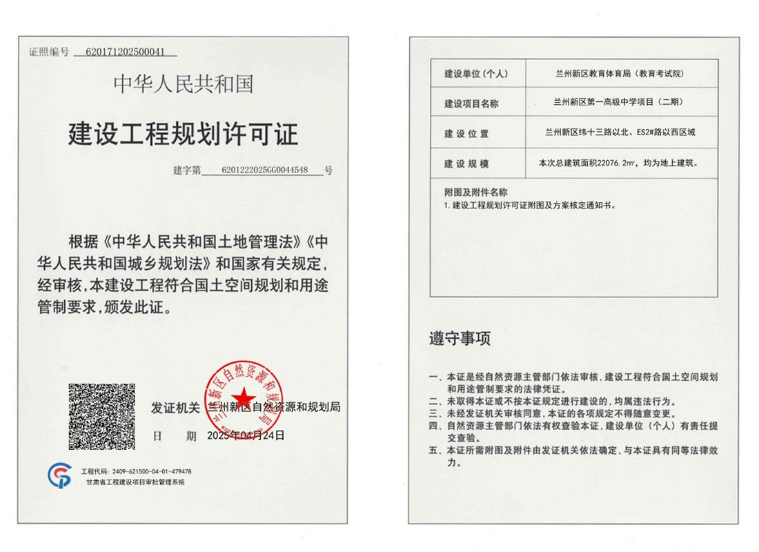 蘭州新區(qū)第一高級中學項目(二期)公示